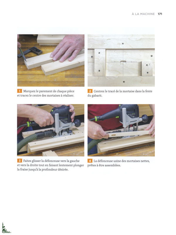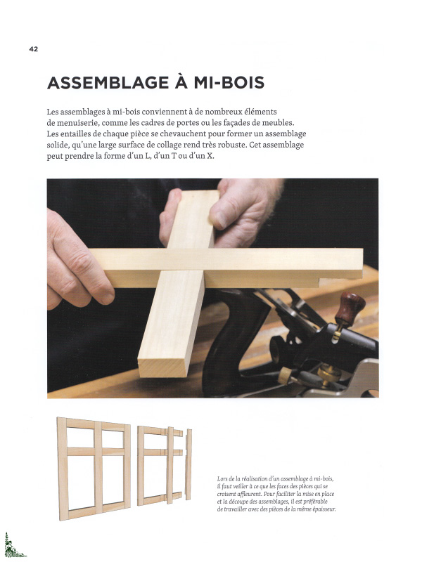 Les assemblages sont une part importante du travail du bois, et savoir effectuer les plus simples d'entre eux est indispensable pour développer ses compétences. Ce guide pratique fournit les informations nécessaires pour en réaliser une vingtaine, parmi les plus utilisés en menuiserie. Pour chacun d'entre eux, l'auteur propose un pas-à-pas détaillé des différentes étapes de réalisation, illustrées de photographies en couleurs. Deux méthodes d'exécution sont décrites : l'une avec des outils à main, l'autre avec des machines.