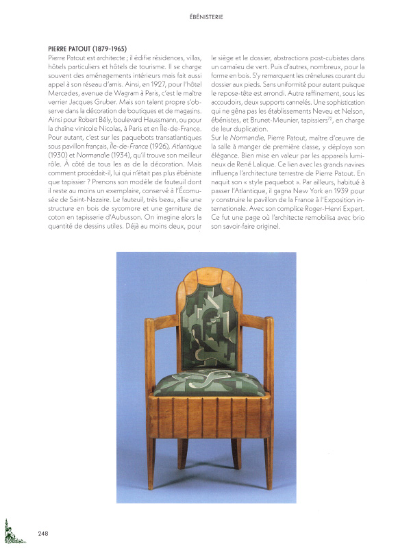 - l'ébénisterie (Ruhlmann, Printz, Chareau, Dufet, Adnet ),