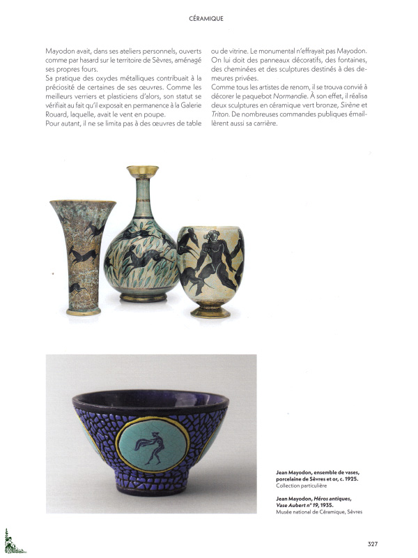 - la céramique (Mayodon, Buthaud, Heiligenstein, Dufy, Cliff ),