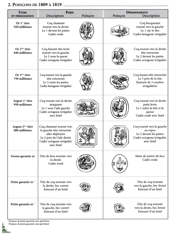 Poinçons Français d'Or, d Argent et de Platine de 1275 à nos jours
