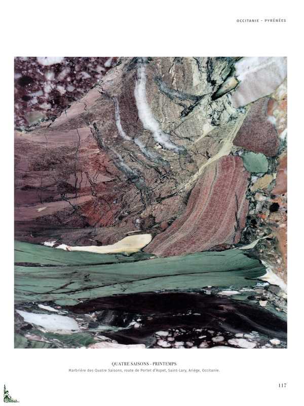 Caractérisés par leur grande richesse chromatique, les marbres français sont extraits dans de petites carrières plutôt artisanales, souvent cachées dans les montagnes et disposant de peu de moyens de promotion. Après avoir connu leur apogée au XVIIe siècle sous l'impulsion de Louis XIV qui en fait un élément central du décor du château de Versailles, ils retrouvent une place de choix au XIXe siècle. Portés par une volonté politique et économique, ils décorent nos plus beaux monuments et s'invitent dans les intérieurs bourgeois pour habiller meubles et cheminées. Alors qu'ils passent de mode au XXe siècle, designers, architectes et décorateurs les redécouvrent aujourd'hui dans le cadre de projets audacieux.